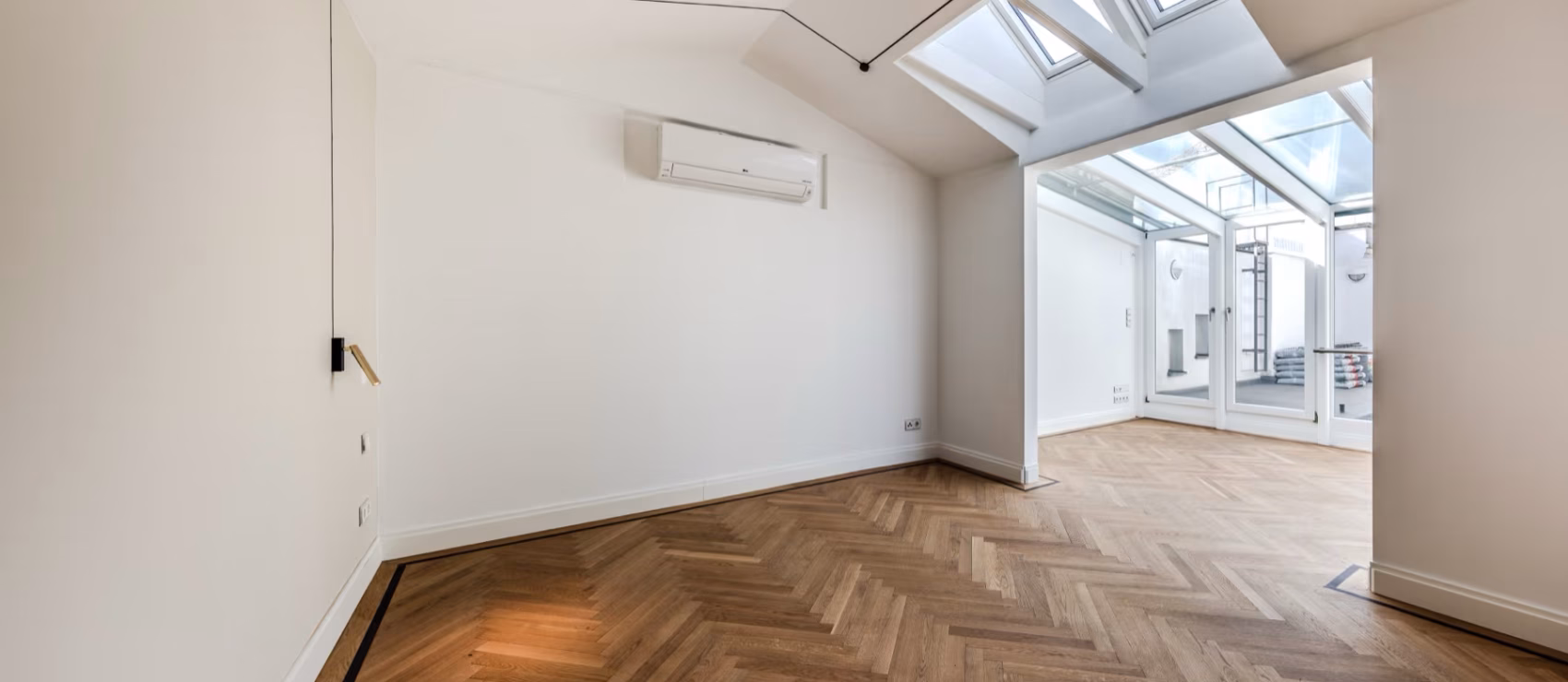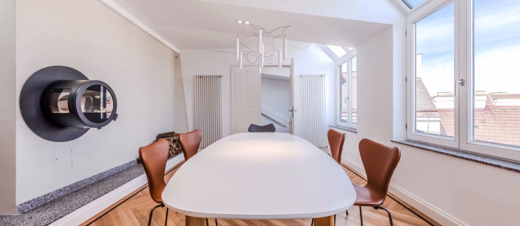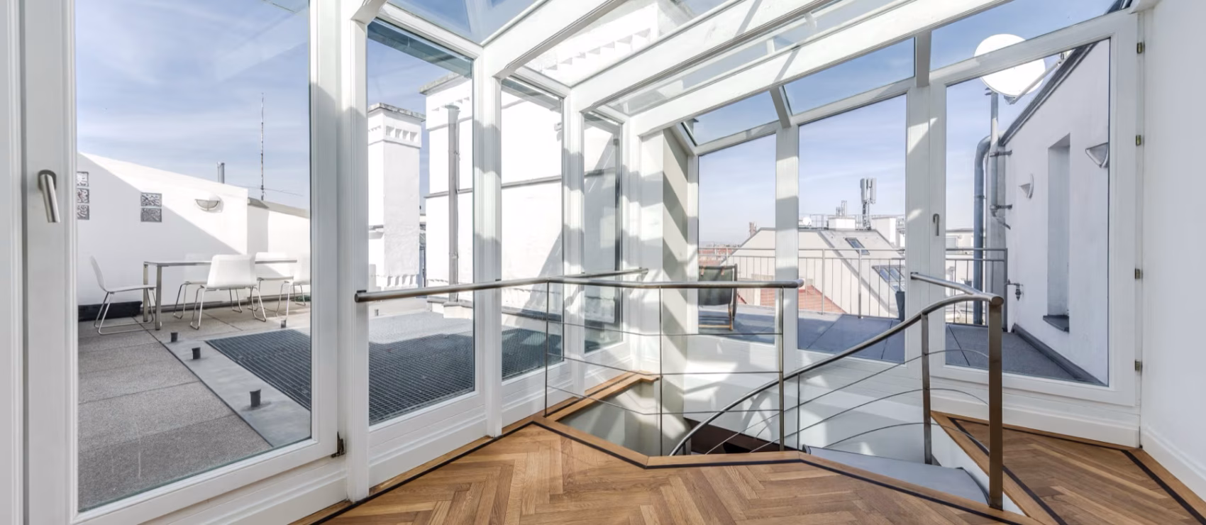 Diese Dachgeschosswohnung ist ein Rückzugsort mit architektonischem Anspruch. Sie liegt in einem der begehrtesten Wiener Bezirke – unmittelbar hinter der Votivkirche – und bietet auf 170 m² Wohnfläche ein Zusammenspiel aus Großzügigkeit, Ruhe und architektonischer Komposition.
