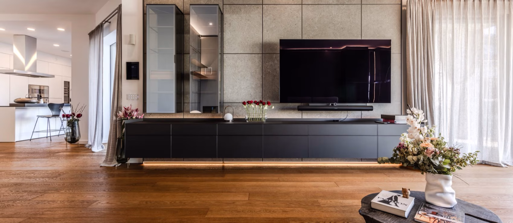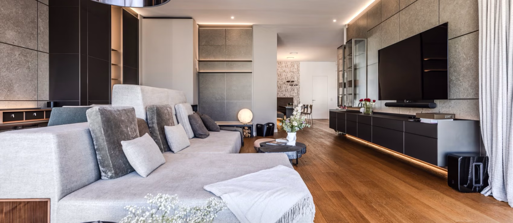 Offene Raumkonzepte, großzügige Raumeinteilung und unterschiedliche Bereiche sollen zu verschiedenen Gestaltungs- und Inszenierungsmöglichkeiten einladen. Verschiedene Nutzungsmöglichkeiten fließen so ineinander, zeitlos gehaltvoll und elegant.