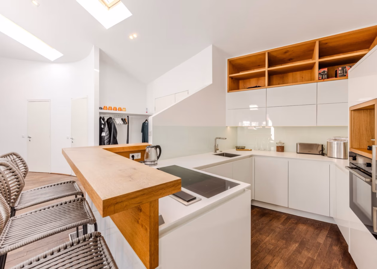 Als Architekt und Gestalter entwerfe ich Küchenzeilen nicht als Möbel, sondern als integrale Raumelemente: Jedes Layout ist maßgeschneidert auf Grundriss, Lichtführung und Materialkonzept des Apartments oder Dachgeschosses, um Kochbereich und Wohnraum in eleganter Kontinuität zu verbinden.